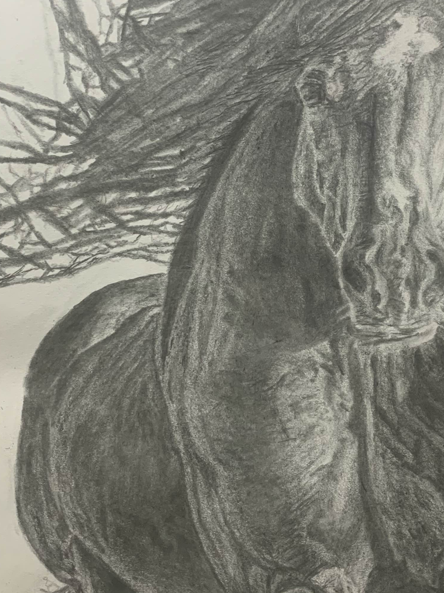 “Untamed Spirit” captures the raw energy of a horse in motion — powerful, free, and unbridled. A detailed graphite drawing that embodies strength and vitality.